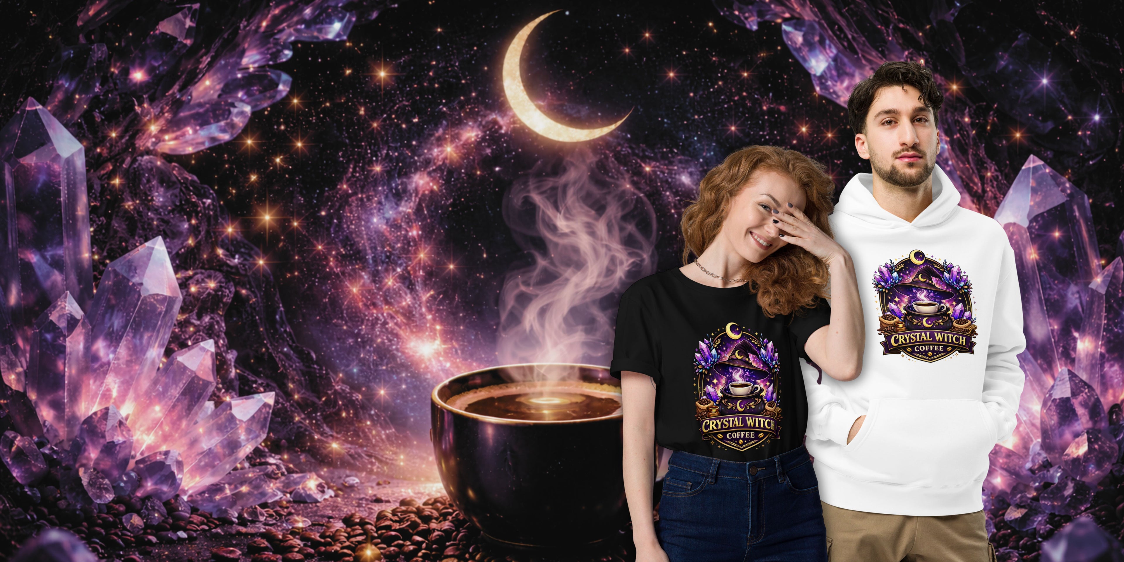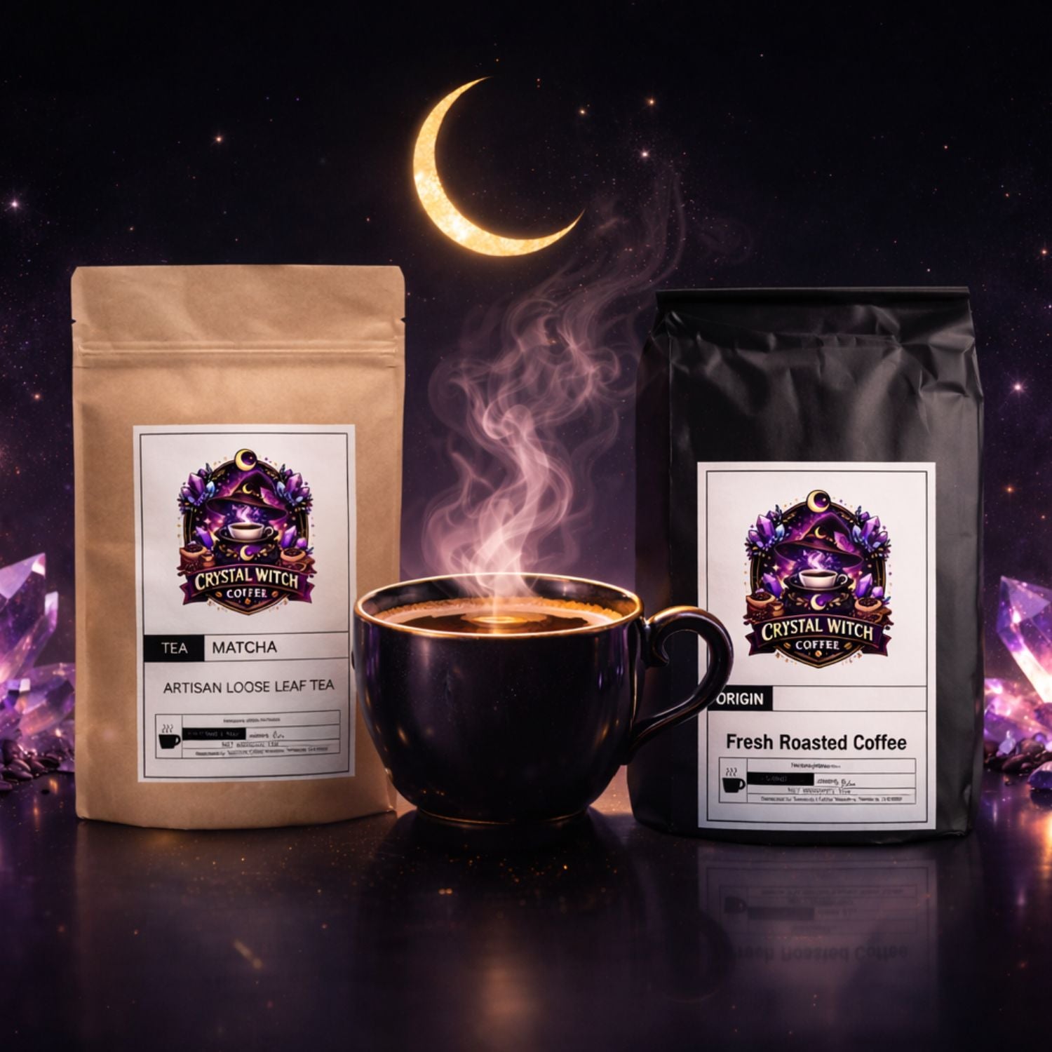 Crystal Witch Coffee is a café-inspired brand created for dreamers, night owls, and anyone who loves a touch of magic in their everyday routine. We blend high-quality coffee and beautifully crafted teas with a cosmic, crystal-inspired aesthetic, creating drinks that feel indulgent, comforting, and full of wonder. Every brew is designed to bring warmth, energy, and good vibes, whether you’re chasing productivity or choosing softness and calm.
